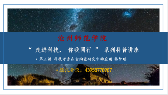 为深入贯彻落实习近平总书记关于教育的重要论述以及科普和科学素养建设的重要论述精神,提升我校学生的学术素养,2022年5月26日下午,我院举办了“走进科技,你我同行”系列线上科普讲座第五讲——“科技考古在古陶瓷研究中的应用”,主讲人为中山大学文物与博物馆学专业硕士、沧州师范学院政史系教师韩梦瑶。