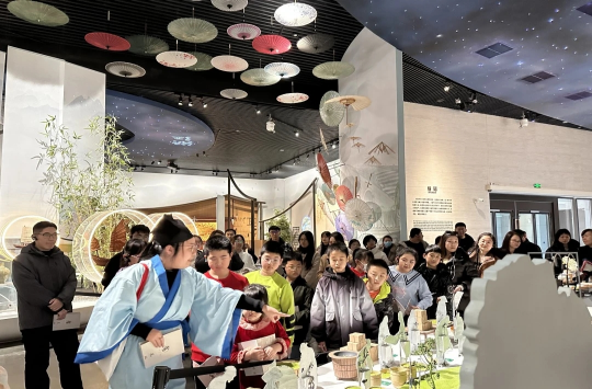 当日下午两点,大运河集团研学项目工作专班组织研学课程《举子赶考日记》内测活动,由姚景芝与文博教研室老师带领文博协会及相关专业同学前往中国大运河非物质文化遗产展示馆参与体验。课程以剧本游的方式进行,在普及大运河及非遗相关的知识的同时,借助NPC互动这一形式,转换古人和今人的视角,打破时空限制,让观众亲自观察感受大运河上和各地发生的事件,从而拉近观众与知识的距离,让观众在感受我国各地丰富而优秀的传统文化,激发其爱国情怀和责任感。