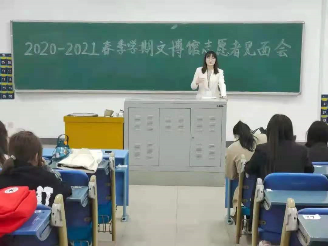 正值春暖花开之季,师院学子归来。冰球突破游戏登录网站文博馆也规划了新学期的计划,为准确传达和布置日后的工作要求,冰球突破游戏登录网站于4月21日晚在文科楼第11阶梯教室召开了2020~2021年冰球突破游戏登录网站文博馆志愿者见面会,参加会议的有韩梦瑶老师和2019级、2020级全体讲解员。