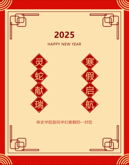 寒假,是心灵休憩与智慧积累的黄金时期。在过去的一学期里,你们以坚韧不拔的毅力、勇于探索的精神,在历史的长河中汲取智慧,在知识的舞台上锤炼思维。现在,是时候放下繁重的学业,让心灵在宁静中得以滋养,也让思维在闲暇中得以拓展。