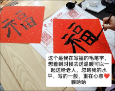 本次活动中,同学们积极参与,有的用笔墨书写祝福,为独居老人和困难家庭送去福字与新春问候;有的与家人共庆团圆,与邻里互道祝福,分享新年的愿望与对美好生活的向往。同学们在传递温情的同时,也展现了青年学子对传统文化的热爱与传承。愿这份温情,如春风化雨,润物无声,滋养更多人的心田,让爱和关怀在社会生根发芽。