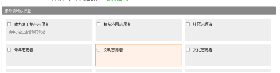 注意1:“服务领域或行业”请选择文明志愿者;“服务类别”请根据所在学院或部门的专业或职能灵活选择。